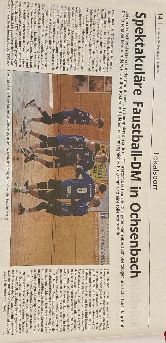 Ein herzliches Grüß Gott auf der Webseite des Turnverein Ochsenbach zur Deutschen Meisterschaft Faustball der U18.